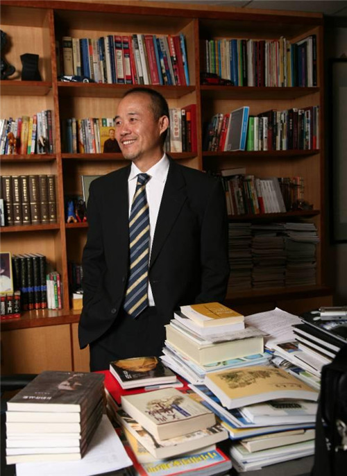 2007年1月,王石在萬(wàn)科的深圳辦公室里,他的辦公桌被各種書(shū)籍包圍。(攝影 / 鄧攀)