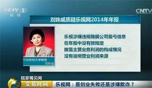 緊接著2015年6月底,曾經(jīng)揭露藍(lán)田股份造假的中央財(cái)經(jīng)大學(xué)教授劉姝威,也質(zhì)疑樂(lè)視涉嫌違規(guī)隱瞞公司盈虧信息,在年報(bào)中沒(méi)有按規(guī)定披露主營(yíng)業(yè)務(wù)利潤(rùn)的構(gòu)成情況,沒(méi)有說(shuō)明營(yíng)業(yè)利潤(rùn)來(lái)源。