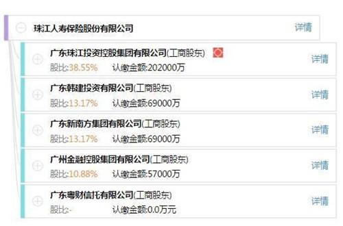 記者查詢獲悉,珠江人壽成立于2012年,由廣東珠江投資控股、廣東金融控股、廣東新南方集團(tuán)、廣東韓建投資、廣東粵財(cái)信托持有。