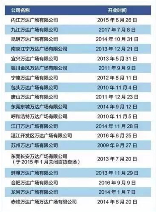 這幾家萬達(dá)廣場的股權(quán)變更時(shí)間分別為:2017年1月18日、2017年4月11日和2017年4月20日。