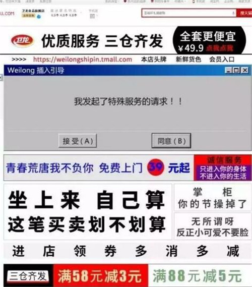 此外,“污”文化也倍它玩得爐火純青。其天貓旗艦店的主頁在某一天以AV網(wǎng)站的畫風(fēng)面世,簡(jiǎn)直污得不要不要的,引得一眾網(wǎng)友以為自己點(diǎn)錯(cuò)了鏈接。