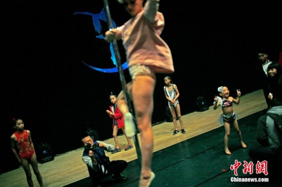 鋼管舞錦標(biāo)賽6歲小女孩成焦點(diǎn)。(記者 佟郁)