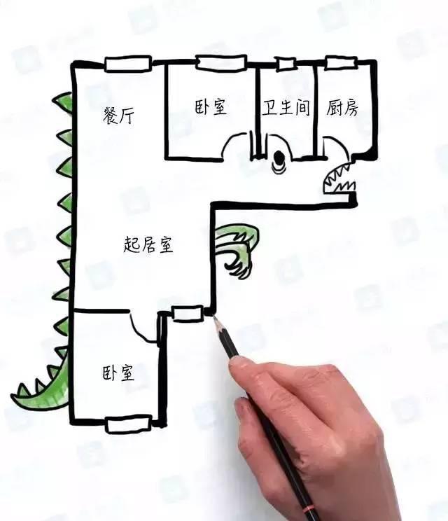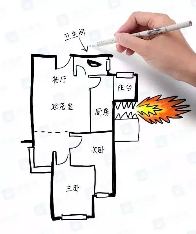 3、客廳有采光,但是房間旁的過道又長又窄,臥室在最盡頭,光線完全照不過去,衛(wèi)生間沒有窗戶,又和廚房一起堵在過道處,味道一定不好聞。