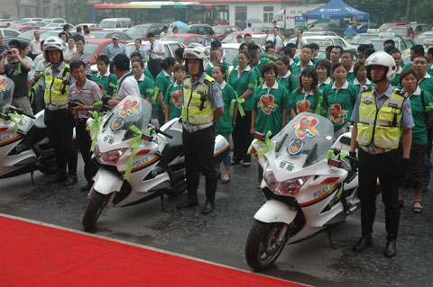 活動(dòng)現(xiàn)場(chǎng)匯集了許多愛(ài)心車(chē)友,鄭州市交警支隊(duì)也派出三個(gè)交警“飛鷹”小組參加啟動(dòng)儀式
