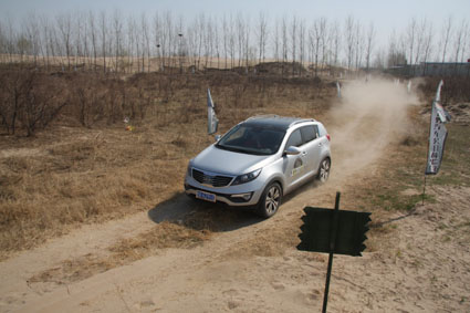 ?。ㄜ囉押嫌埃?br /> 報(bào)名參加這次越野活動的河南交通廣播的愛心車友達(dá)到100多名?;顒蝇F(xiàn)場,上百號人讓平時寂靜的黃河灘熱鬧起來,河邊的一塊空地上,一百多面旗子在迎風(fēng)飄揚(yáng)——“河南交通廣播”的LOGO下赫然印著“越野汽車公開體驗(yàn)營”九個大字,背景板不遠(yuǎn)處,就是體驗(yàn)駕馭越野車的賽場。駝峰、馬蹄坑、滾木路障、彈坑路、沙土路、連續(xù)轉(zhuǎn)彎……墨綠色背景的提示牌讓越野的氣息撲面而來。