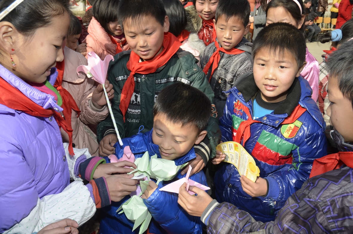 活動(dòng)結(jié)束后,懂得感恩的學(xué)生現(xiàn)場(chǎng)為愛心車友演唱了《感恩的心》,并為城里的小朋友送上了自己疊的千紙鶴、百合花等折紙,善良淳樸的孩子還為城里的小朋友送上了山里的土特產(chǎn),花生、紅薯、蓮藕等,一袋袋的塞到小朋友手里,在場(chǎng)的家長(zhǎng)看到,感慨的說:“山里孩子很純真、很善良。”