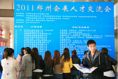 2011年10月30日,由鄭州市會(huì)展工作管理辦公室主辦,河南電臺(tái)信息廣播提供媒體支持的鄭州會(huì)展人才交流會(huì)在鄭州國(guó)際會(huì)展中心盛大舉行。別開生面的校企交流會(huì)上,數(shù)十家知名會(huì)展企業(yè)在現(xiàn)場(chǎng)招聘會(huì)展專業(yè)的策劃、設(shè)計(jì)、營(yíng)銷類人才。