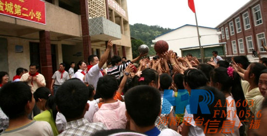 當(dāng)現(xiàn)場的工作人員把《周迪有戲》欄目組以及愛心企業(yè)、愛心聽眾帶給孩子們的禮物以及學(xué)習(xí)、體育用品逐一發(fā)到孩子們的手中時,整個操場頓時歡呼雀躍。