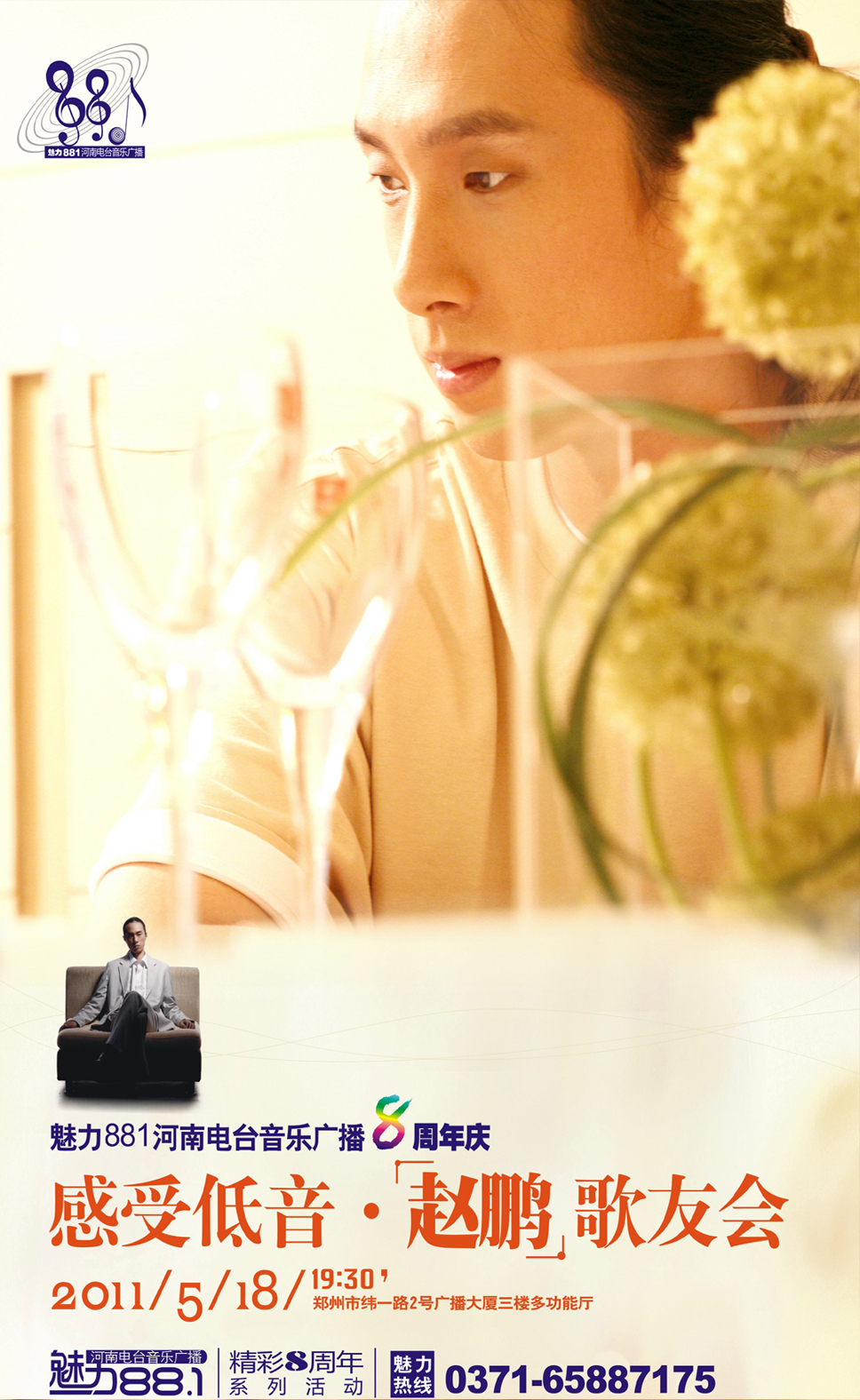 “感受低音 趙鵬歌友會”于5月18號晚7點(diǎn)半將在在鄭州緯一路廣播大廈三樓多功能廳舉行。如果你也想親臨現(xiàn)場,聆聽他的迷人低音嗓音。參與方式:1、成為@河南電臺-新媒體粉絲2、轉(zhuǎn)發(fā)此條微博同時@兩位好友。屆時,你就有機(jī)會贏得歌友會門票,并能親臨現(xiàn)場欣賞!