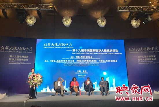 映象網(wǎng)快訊(記者 王邵怡 文/圖)3月29日,五位從非洲五個(gè)國(guó)家遠(yuǎn)道而來的朋友來到鄭州,參加在這里舉辦的“駐華大使對(duì)話中原—第十九屆非洲駐華大使巡講活動(dòng)”。這五位分別是來自贊比亞、納米比亞、津巴布韋、埃塞俄比亞和南非的駐華大使及參贊。他們到河南來推介自己的國(guó)家,希望連接起河南與非洲的經(jīng)貿(mào)往來與合作。