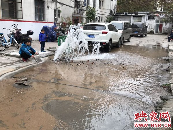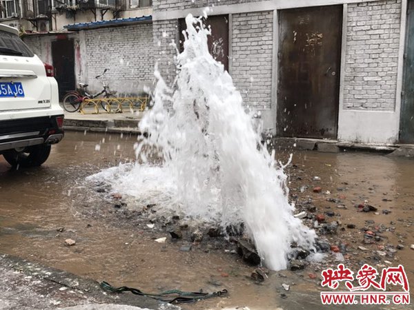 映象網(wǎng)快訊(記者 邱延波 文/圖)11月19日,鄭州桐淮小區(qū)南家屬院19號(hào)樓前,因地下自來水主管道爆管導(dǎo)致路面噴出2米多高的“噴泉”,白白浪費(fèi)掉兩三個(gè)小時(shí)的自來水。一輛轎車壓住閥門井蓋導(dǎo)致無法關(guān)閉閥門,而車主在黃河邊,下午才能回來,工作人員只好把小區(qū)的總閥門關(guān)閉。19日上午9時(shí)許,桐柏路汝河路口東南角處的桐淮小區(qū)南院19號(hào)樓2門洞前的自來水地下管道爆管現(xiàn)場(chǎng),小區(qū)水泥路邊爛個(gè)洞,噴出高高的水柱,小區(qū)道路上全是積水。