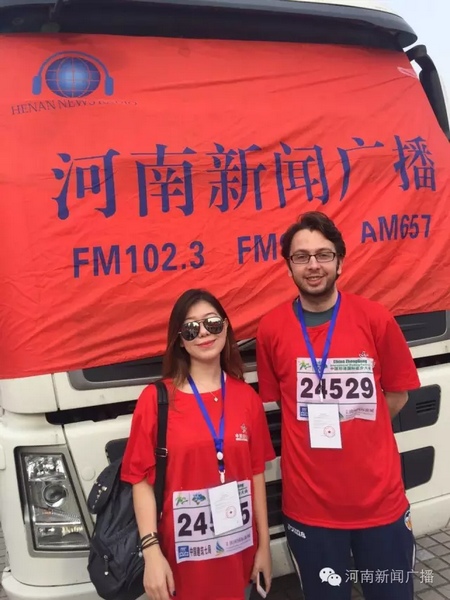 國家大賽,當(dāng)然要有國際友人哦。這位美女來自哈薩克斯坦,中文說的非常溜,這位型男來自烏干達(dá)。友誼第一比賽第二,兩位國際友人說,比賽完要好好逛逛我們河南的青山秀水~