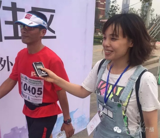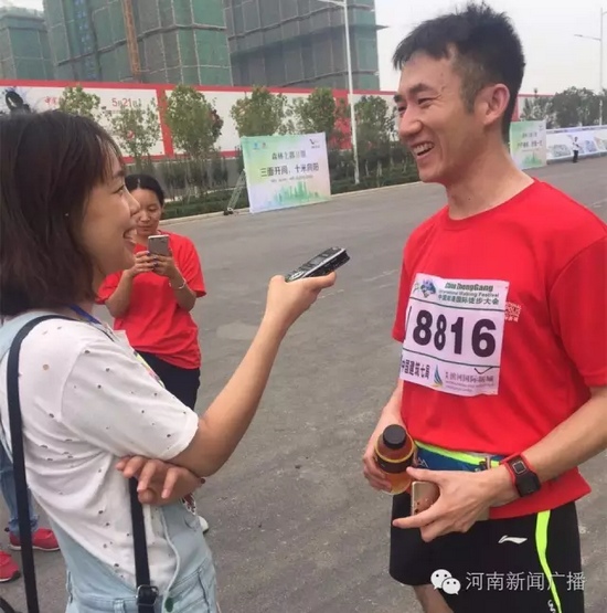 僅僅過了2小時(shí)20分,終點(diǎn)迎來第一位沖向終點(diǎn)的高先生,氣喘吁吁的他在接受我們采訪時(shí)依然腳步穩(wěn)健。