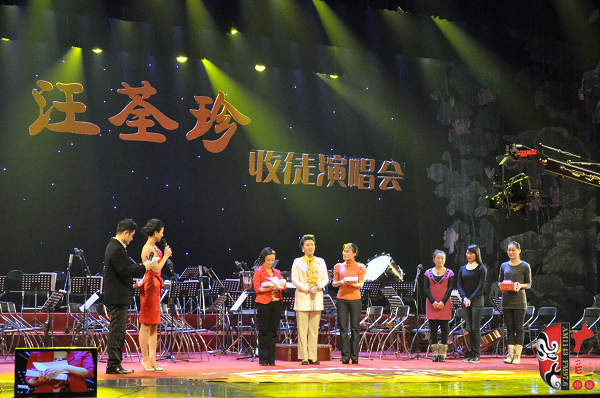 本次成為汪荃珍徒弟的分別是許昌市豫劇團的何艷芳和三團的韓亞冰,在拜師儀式上,著名戲劇評論家荊樺用“常大師的好學生、舞臺上的好演員、劇團里的好團長、朋友們的好朋友”來形容汪荃珍,汪荃珍自己也說,要銘記常香玉大師的教誨——“先做人,后演戲,戲比天大”,為戲曲事業(yè)培養(yǎng)更多優(yōu)秀人才。讓人印象深刻的是,汪荃珍沒有按照傳統(tǒng)的形式接受弟子的行禮,而是與弟子攜手共同向全場觀眾三鞠躬致意,贏得了觀眾們熱烈的掌聲,之后,汪荃珍與兩位弟子一起表演了《香魂女》當中的經典選段,將整場演出的氣氛推向了高潮。