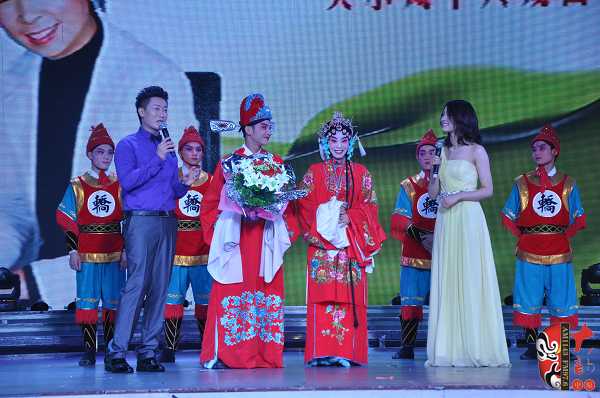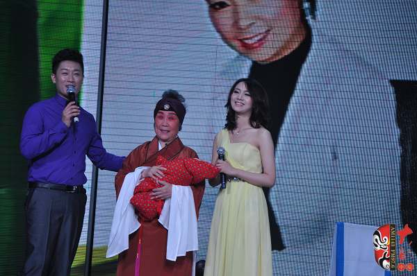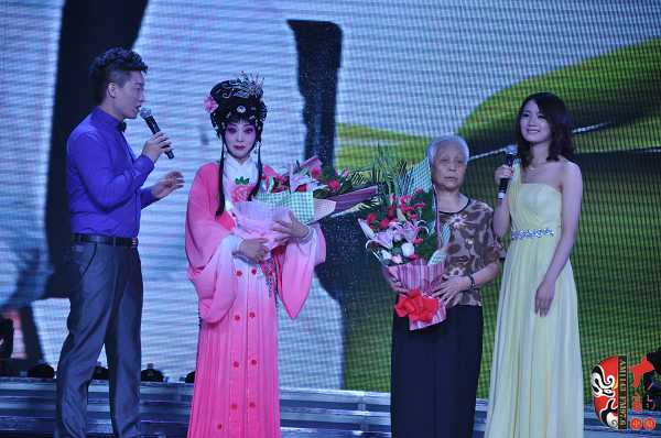 在6月16日舉辦的關(guān)小鳳個人戲曲專場中,關(guān)小鳳之女、24歲的張聰表演了豫劇《情斷狀元樓》“打神告廟”及《抬花轎》的“坐轎”兩折戲。畢業(yè)于河南省藝校的張聰現(xiàn)場表演稍顯稚嫩,但也獲得了觀眾的熱情鼓勵。張聰在接受記者采訪時說,自己戲校畢業(yè)之后到了福建省一閩劇團(tuán)工作,已經(jīng)有五、六年未接觸豫劇了。媽媽歷經(jīng)艱辛把自己帶大,特別不容易,這次為了支持媽媽的專場演出,她專程回河南、花十天時間趕排了兩折戲……在張聰表演完《抬花轎》的“坐轎”一折,一位身穿狀元紅袍、手捧鮮花、操南方口音的英俊小伙上臺向“周鳳蓮”求婚,經(jīng)張聰介紹,觀眾才豁然明白,英俊小伙乃她的老公,結(jié)婚時,媽媽關(guān)小鳳因為忙于工作未能參加,借此現(xiàn)場要補行跪拜大禮,以感謝母親的養(yǎng)育之恩。此情此景,讓現(xiàn)場不少觀眾為之動容。