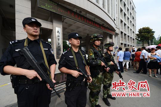 鄭州警方根據(jù)全市考區(qū)的實際情況進行了警力部署:市內(nèi)每個考點安排轄區(qū)派出所民警6名、交巡警6名、特警4名;上街、中牟、滎陽、新鄭、新密、登封每個考點安排執(zhí)勤民警16名,其中:派出所民警6名、交警6名、特警4名。為全力服務考生,鄭州警方要求各單位執(zhí)勤民警在開考前1個小時到達指定崗位,認真履行各項職責,考試結(jié)束40分鐘后撤崗。對位于繁華路段、周邊治安復雜或交通擁堵路段的學校有針對性的增派警力,切實加強考點及周邊安全保衛(wèi)工作。