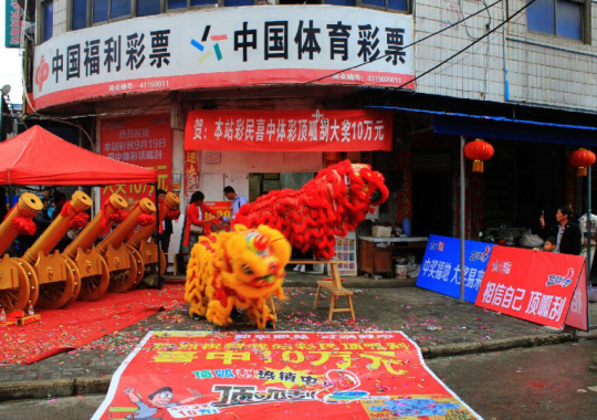 當(dāng)天下午,雖然下過小雨,但銷售網(wǎng)點(diǎn)門前仍然是人滿為患,好不熱鬧。聽說銷售點(diǎn)中了大獎(jiǎng),很多附近的彩民都來圍觀“中獎(jiǎng)福地”,業(yè)主張女士還專門請(qǐng)來了兩組舞獅隊(duì)進(jìn)行即興表演,一時(shí)間現(xiàn)場(chǎng)氣氛達(dá)到頂點(diǎn),據(jù)張女士說,自從她的銷售站出了大獎(jiǎng),慕名而來“沾喜氣”的彩民很多,大家都是試試手氣隨手刮上一兩張頂呱刮彩票。
