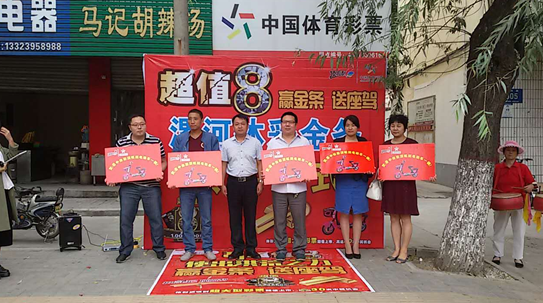 截止9月18日,在轟轟烈烈的中獎(jiǎng)熱潮中,漯河共中出座駕10輛,金條1根。好事傳千里!這樣的喜訊很快在漯河體彩網(wǎng)點(diǎn)和彩民中宣傳開來(lái),這不,9月19日上午漯河分中心組織中獎(jiǎng)彩民在4111030616網(wǎng)點(diǎn)門口舉行了“超值8”頒獎(jiǎng)儀式。在活動(dòng)現(xiàn)場(chǎng),獲得座駕和金條大獎(jiǎng)的彩民紛紛趕來(lái),在大家的祝賀聲中走向頒獎(jiǎng)臺(tái)。而他們中獎(jiǎng)的喜訊也在各大網(wǎng)點(diǎn)微信群、朋友圈和QQ群中反復(fù)轉(zhuǎn)發(fā)。