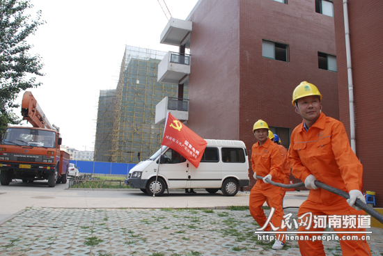 人民網(wǎng)南陽8月3日電 烈日炎炎,揮汗如雨,為確保第七屆全國農(nóng)運(yùn)會(huì)順利舉辦,實(shí)現(xiàn)農(nóng)運(yùn)會(huì)供電“電網(wǎng)安全零事故、保電現(xiàn)場(chǎng)零停電、供電設(shè)備零缺陷”為目標(biāo),南陽市電力公司職工頂著高溫酷暑緊張施工。