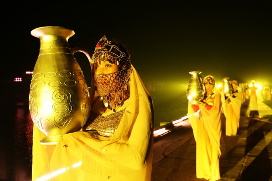 整個(gè)演出運(yùn)用大量的科技手段,制造出夢幻的效果,把人們的記憶拉向一千多年前的那個(gè)輝煌朝代。