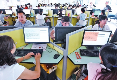 昨天上午9點半,鄭州47中的評卷現(xiàn)場內(nèi),各科評卷教師被分別集中在相應(yīng)的機(jī)房里閱卷評卷,十分安靜。
