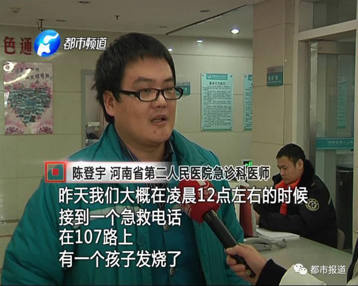 河南省第二人民醫(yī)院急診科值班的工作人員,接到電話后,迅速組織人員趕往現(xiàn)場, 發(fā)燒的孩子只有10個月大,體溫高達到40度。