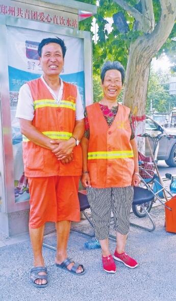 今年62歲的她,老家在周口淮陽縣曹河鄉(xiāng)任莊村。她說,她和老伴任新嶺都是環(huán)衛(wèi)工,工作地點都在金水路,主要負責金水路路北從英協(xié)路口到興亞建國飯店門口噴泉處的路面保潔。