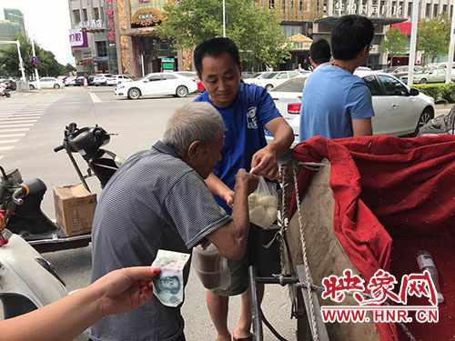 8月23日中午,在鄭州市福元路英協(xié)路路口,愛心市民注意到了正在賣大蒜的兩位老人,紛紛上前搶購(gòu)。