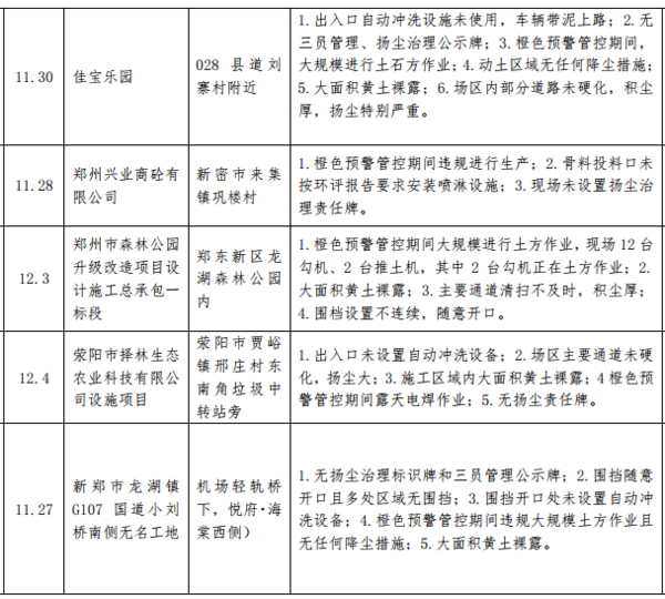 12月7日,記者從鄭州市環(huán)境污染防治攻堅辦了解到,11月27日至12月3日,鄭州市環(huán)境污染防治督導組重點對全市"封土行動"方案、橙色預警管控措施落實和30天沖刺行動方案落實情況進行督導檢查。從督查情況來看,大部分單位都夠按照要求,落實"封土令"和預警管控措施,但也有個別施工工地和企業(yè)未按要求停工、停產或限產減排。