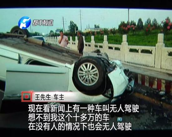 王先生說,當時他將車停在路邊,準備下車打電話,沒想到剛剛下車,車就自個兒跑了。汽車一路“狂飆”,王先生眼睜睜地看著自己的轎車撞向路中間的轉(zhuǎn)盤。