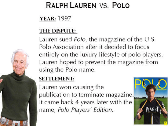 糾紛:Ralph Lauren禁止美國馬球協(xié)會雜志在馬球運(yùn)動配件方面的產(chǎn)品使用“Polo”名稱