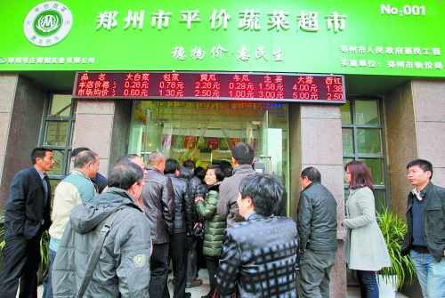 記者在鄭州市政府《關(guān)于推進(jìn)平價(jià)商店建設(shè)工作的意見(試行)》中看到,根據(jù)規(guī)劃目標(biāo),年底前市內(nèi)將在50個(gè)大型社區(qū)建立平價(jià)商店;2014年底,在全市50%以上的大型社區(qū)建立平價(jià)商店;2016年底,全市所有大型社區(qū)做到全覆蓋。