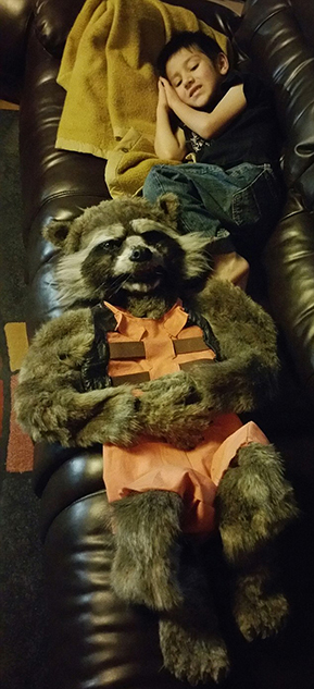 美媽為她的兒子制作的“火箭浣熊”套裝。