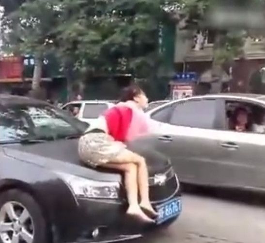 據(jù)說這名女子經(jīng)常出沒在這帶上演人車大戰(zhàn)。路上的小轎車司機(jī)看見她就十分的頭痛。因為她專找小轎車下手。其實也不傻!今天又出現(xiàn)在村里的小吃街上了,鎖定黑色雪佛蘭。二話不說就上了它!其實就她的一些小計倆,路邊的人都心知肚明了,誰叫她精神有點不好呢!