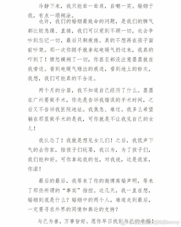 劉洲成凌晨發(fā)長文否認(rèn)家暴