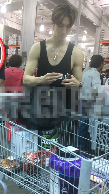 前天錦榮頂著中分發(fā)型、穿黑色背心、運(yùn)動(dòng)褲,露出結(jié)實(shí)胸膛與臂膀,打扮隨興,身旁沒(méi)有女伴。身高189公分的他鶴立雞群,一人推著購(gòu)物車(chē)四處閑逛,在賣(mài)場(chǎng)約待了半小時(shí),最后他買(mǎi)了烤雞跟日用品。