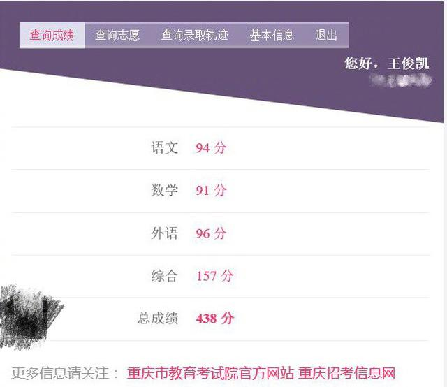 據(jù)悉,王俊凱438分的總成績在重慶市的高考分數(shù)線中,超過二本線2分,對于一個藝考成績來說,實屬不易。