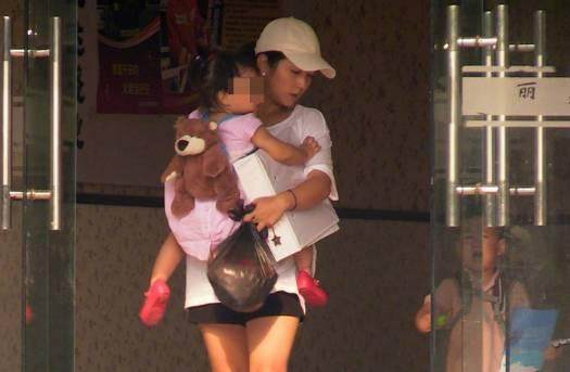 何潔手里抱著女兒 兒子七寶在后面追著哭