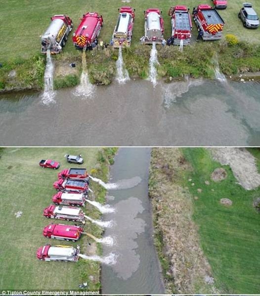 印第安納州環(huán)保當(dāng)局表示,該工廠的牛奶不會(huì)對(duì)附近的人類或野生動(dòng)物構(gòu)成危險(xiǎn),只是得盡快處理以免事情進(jìn)一步擴(kuò)大。事故發(fā)生后,有關(guān)人員將干草包投放到河中以防止牛奶進(jìn)一步擴(kuò)散,而清理公司則從河水中清除了約1.4萬加侖(約53噸)的水和牛奶混合物。