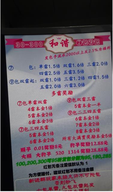 10月11日晚8時許,咸安公安分局治安大隊民警在對旅店業(yè)進行巡查時,發(fā)現(xiàn)該區(qū)一酒店1316房間住宿人員曹某、劉某、殷某、駱某等4人行跡可疑。經(jīng)對其隨身物品進行檢查,民警發(fā)現(xiàn)他們在電腦上利用QQ群搶紅包設置“中雷”的方式組織人員進行賭博,其所建立的“和諧家園30-300多雷群”成員達200余人,涉賭金額巨大。