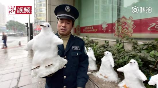 原標(biāo)題:下雪后,這位保安堆了個動物園!萌得心肝兒都化了…