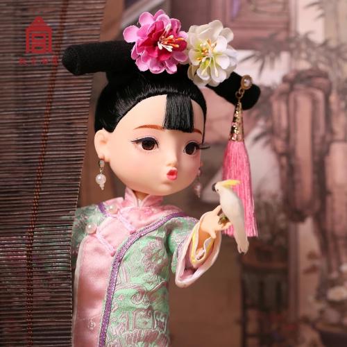 因此,故宮文創(chuàng)根據(jù)中國人的傳統(tǒng)五官印象,設(shè)計成此款烏發(fā)杏眼,寬額小嘴的中國娃娃。故宮文創(chuàng)方面表示,首次娃娃選擇了清代服飾,并在工藝允許的基礎(chǔ)上努力還原真實的清朝格格形象,之后還會陸續(xù)推出不同朝代的格格或公主服飾單品。