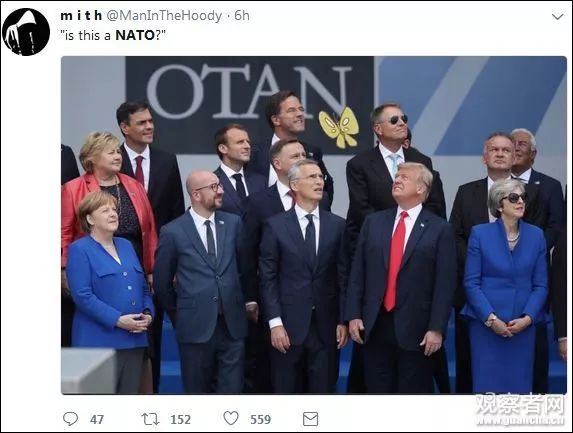 該照片目前已經(jīng)被西方各大主流媒體使用,作為其報(bào)道北約峰會(huì)的頭圖,比如美國(guó)《新聞周刊》、《時(shí)代》等。