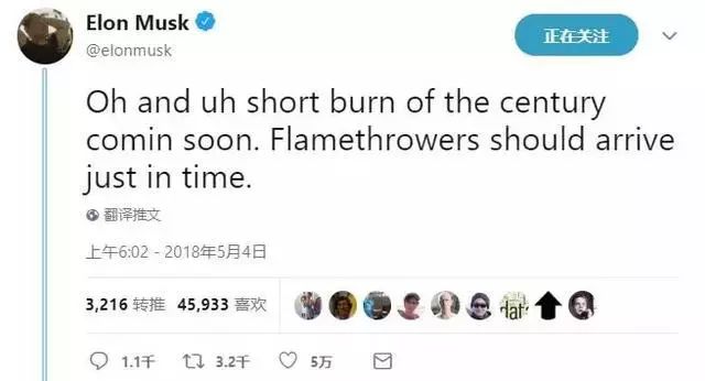 每日經(jīng)濟(jì)新聞(微信號(hào):nbdnews)記者注意到,今年5月初,馬斯克還自信滿滿地表示,他將“很快燒光做空者”。