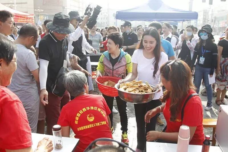 上午8時左右,在西華縣人民會堂前目睹鄧亞萍擼起袖子現場和村民們一起炸麻葉,村民們對奧運冠軍如此接地氣紛紛豎起了大拇指。