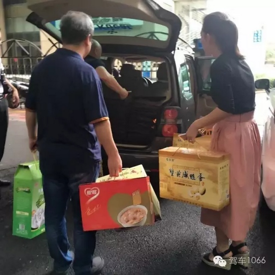 2016年7月31日早上6點,河南電臺FM106.6《二姐駕到》欄目組的二姐們在當?shù)刂驹刚叩呐阃?,準備探訪抗戰(zhàn)老兵的物資。
