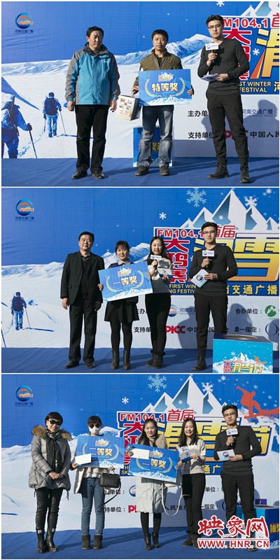 準(zhǔn)備工作已經(jīng)就緒,車友們已經(jīng)按捺不住要滑雪的心情了,在滑雪正式開始之前,1041《MORE FUN 音樂》主持人王哲和《馬路歡樂派—早間》主持人彎彎,禹州市大鴻寨臥佛山旅游開發(fā)有限公司總經(jīng)理王鋒偉先生也來(lái)給大家加油打氣了。
