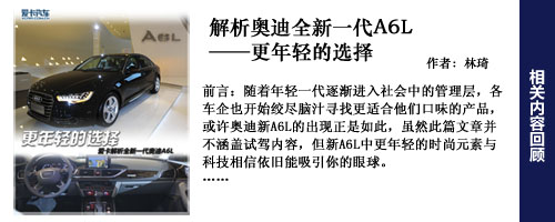 編輯點評:新一代奧迪A6L外觀更加年輕,目標(biāo)用戶群會進一步下探,而A6L更大的改變在與內(nèi)飾上,更寬敞的空間,更豪華的內(nèi)飾,更加具有科技含量的電子配置。動力總成和四驅(qū)系統(tǒng)上變化較少,好在奧迪A6L的用戶群對此并不十分關(guān)心。頂著“第一官車”的光環(huán),有政府采購做保障,奧迪A6L并不愁銷路,不過奧迪希望能逐步降低對公務(wù)市場的依賴,以降低采購政策改變所帶來的風(fēng)險。