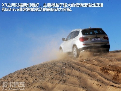 搭載3.0T發(fā)動機(jī)的寶馬X3,很顯然比Q5更為“肌肉”,但面對松軟的沙坡它也清楚的知道:光有腿部力量是遠(yuǎn)遠(yuǎn)不夠的,還必須要結(jié)合上肢力量才有可能登頂,此刻,xDrive系統(tǒng)起到了決定性的作用。