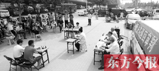 5月22日上午,鄭州市西四環(huán)須水立交橋旁,鄭州市中原區(qū)人民法院將法庭搬到這里,公開開庭審理了一起貨車肇事案,十幾名貨車司機坐在樹蔭下旁聽。